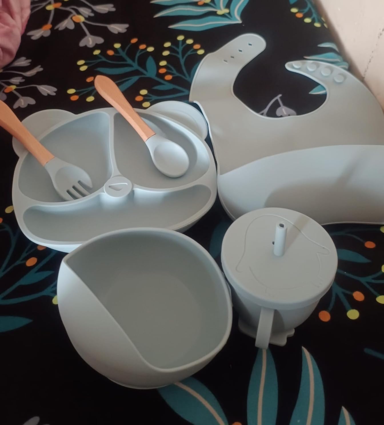 One set, all the essentials! 🍴 From suction bowl & plate to bib, cup, spoon, and fork — this kit covers every stage of your baby’s mealtime journey. Safe, durable & parent-approved.