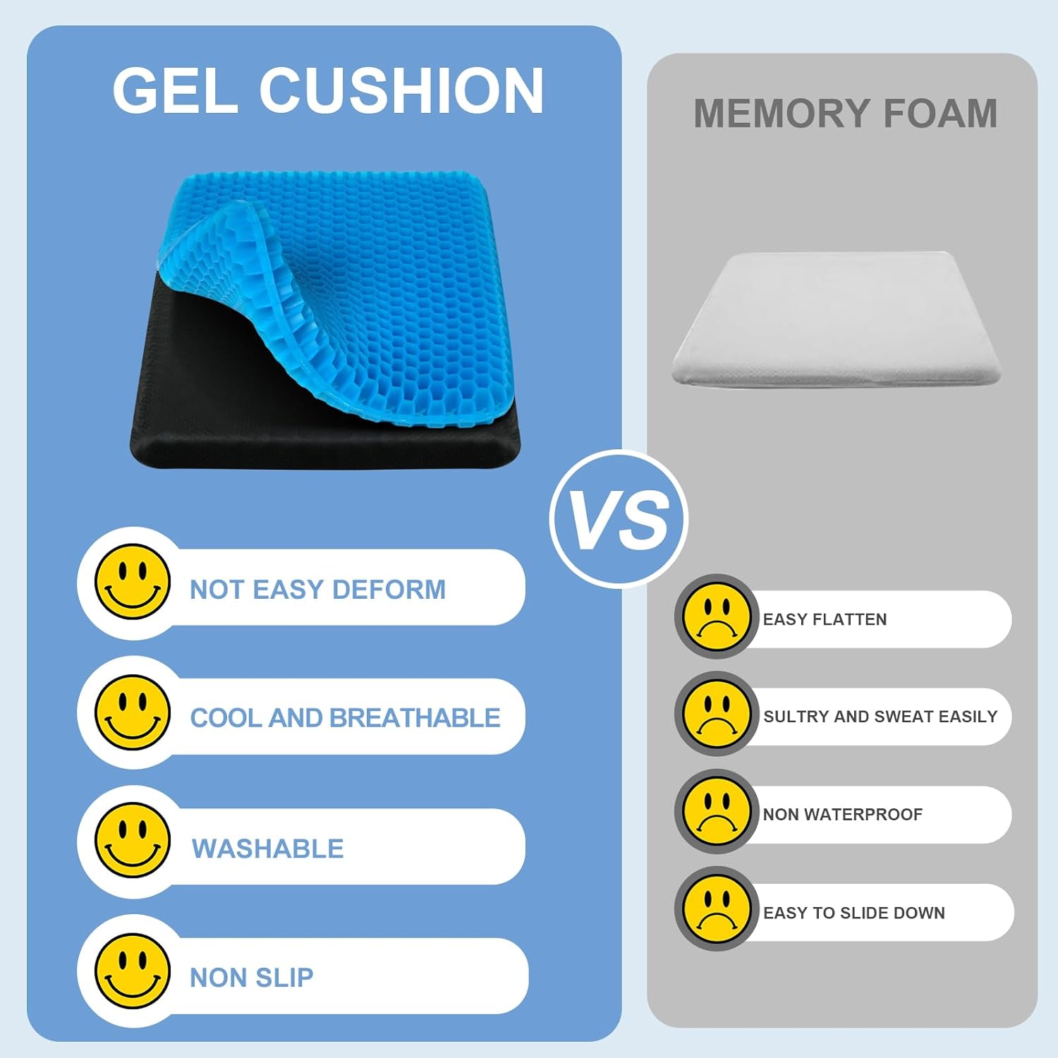 The Gel Seat Cushion is made from high-quality gel and features a breathable honeycomb design that promotes airflow, helping to reduce heat and discomfort during long sitting periods.